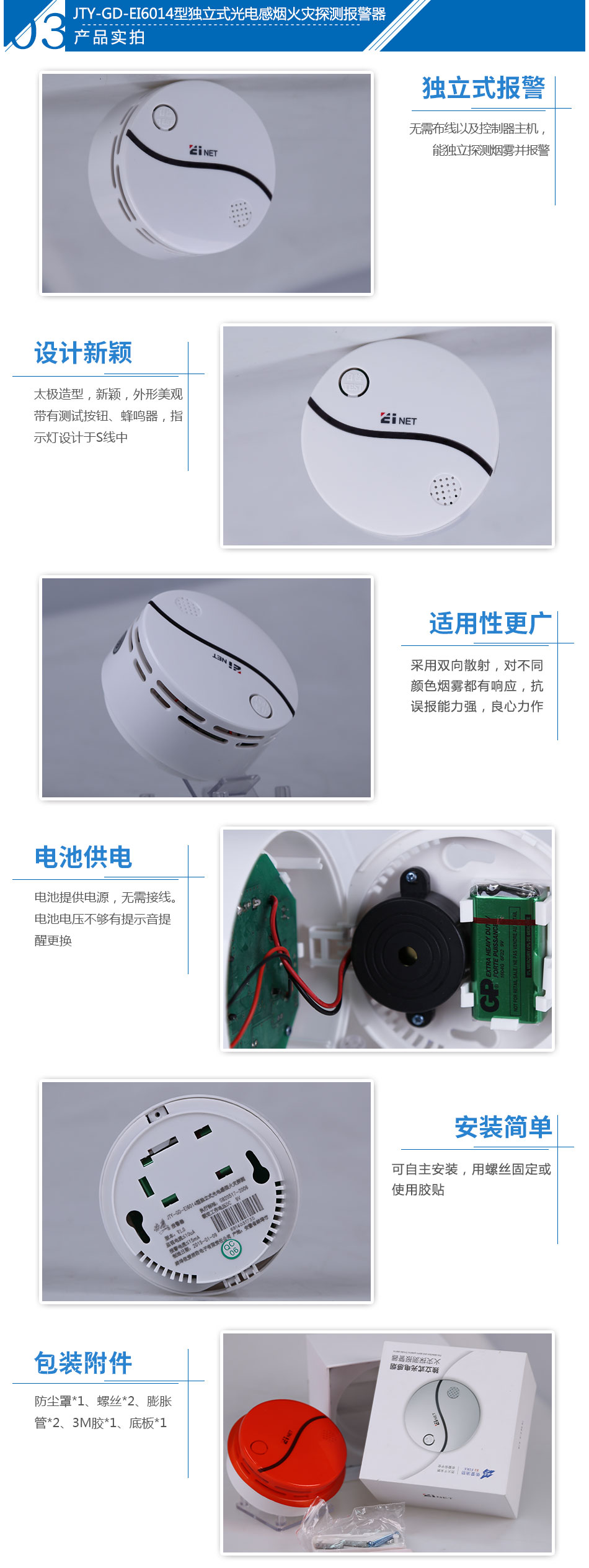 依愛JTY-GD-EI6014型獨立式光電感煙火災(zāi)探測報警器