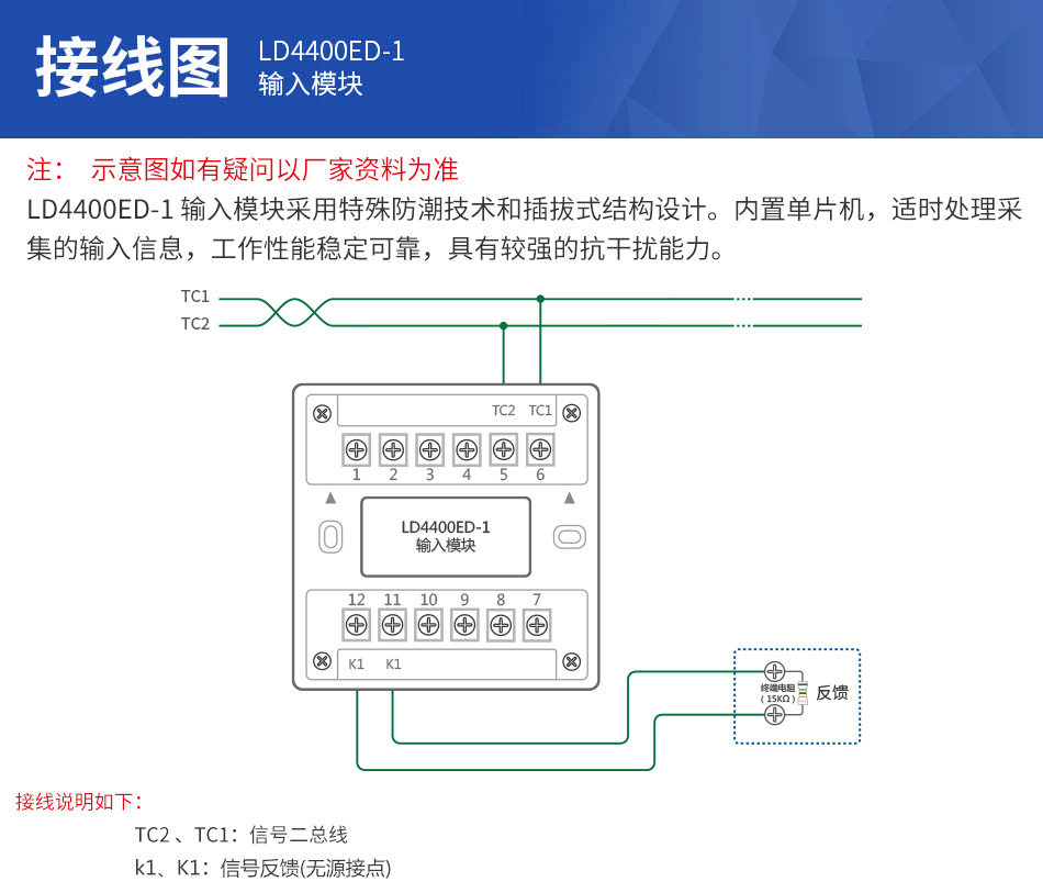5、LD4400ED-1輸入模塊可檢測無源開關(guān)接點(diǎn)線路斷線故障。
