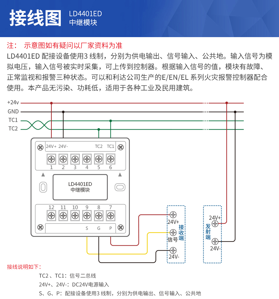1、LD4401ED中繼模塊二總線,無極性。