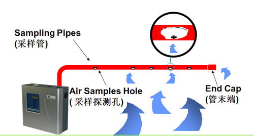 吸氣式感煙火災(zāi)探測器跟傳統(tǒng)的(點(diǎn)型)煙霧探測器有所不同??諝獠蓸酉到y(tǒng)由在天花板上方或下方每隔幾米平行安裝的管道組成。在每根管子的上面,每隔幾米就鉆有一個(gè)小孔,這些小孔很均勻的在天花板上分布,這樣就形成了一組矩陣型的空氣采樣孔。利用探測主機(jī)內(nèi)部抽氣泵所產(chǎn)生的吸力,空氣樣品或煙霧通過這些小孔被吸入管道中并傳送到達(dá)探測主機(jī)內(nèi)部的高靈敏度煙霧探測腔檢測空氣樣品中的煙霧顆粒濃度,可實(shí)現(xiàn)未現(xiàn)火苗時(shí)提前報(bào)警,以達(dá)到在損失未發(fā)生時(shí)就已扼殺在搖籃中。