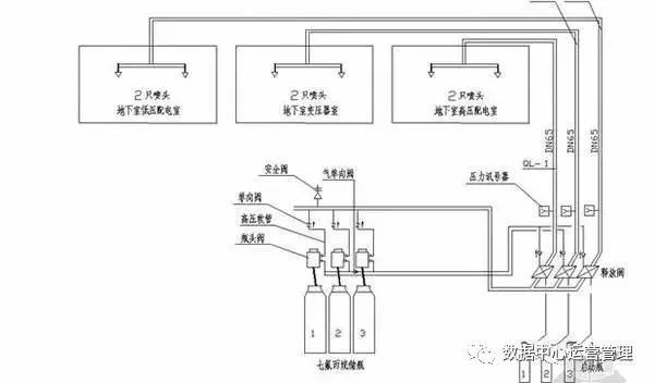 在不能使用水介質來進行試驗的場所中,象本工程是安裝在變配電室那的,這種情況則可采用氣壓強度試驗代替,氣壓強度試驗壓力的0.8倍,或滅火劑初始噴射時系統(tǒng)的實際工作壓力的1.2倍進行。
