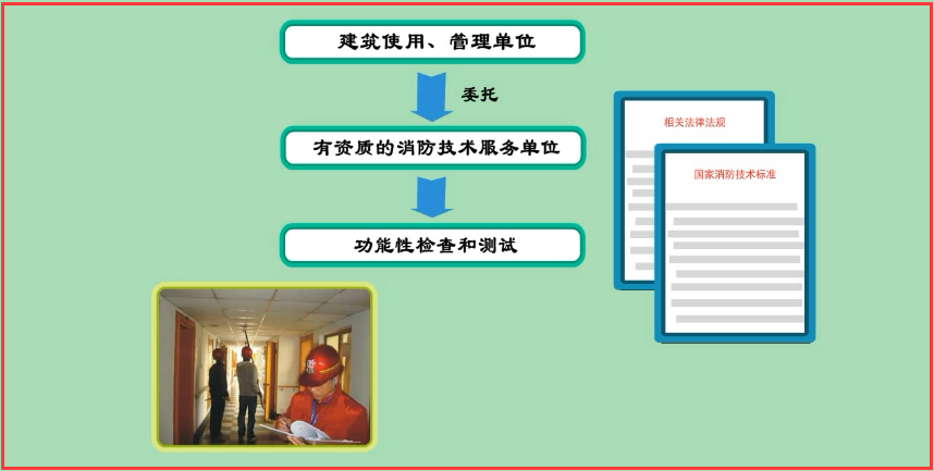 年度檢測是建筑使用、管理單位按照相關(guān)法律法規(guī)和消防技術(shù)標(biāo)準(zhǔn),每年度開展的定期功能性檢查和測試;建筑使用、管理單位的年度檢測可以委托具有資質(zhì)的消防技術(shù)服務(wù)單位實(shí)施。年度檢測內(nèi)容和要求見本章第四節(jié)“系統(tǒng)的檢測與驗(yàn)收”中“系統(tǒng)檢測”的內(nèi)容。