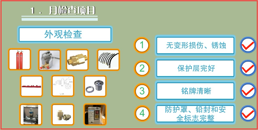 系統(tǒng)周期性檢查是指建筑使用、管理單位按照工程建設(shè)消防技術(shù)標(biāo)準(zhǔn)的要求,對已經(jīng)投入使用的氣體滅火系統(tǒng)的組件、零部件等按照規(guī)定檢查周期進(jìn)行的檢查、測試。