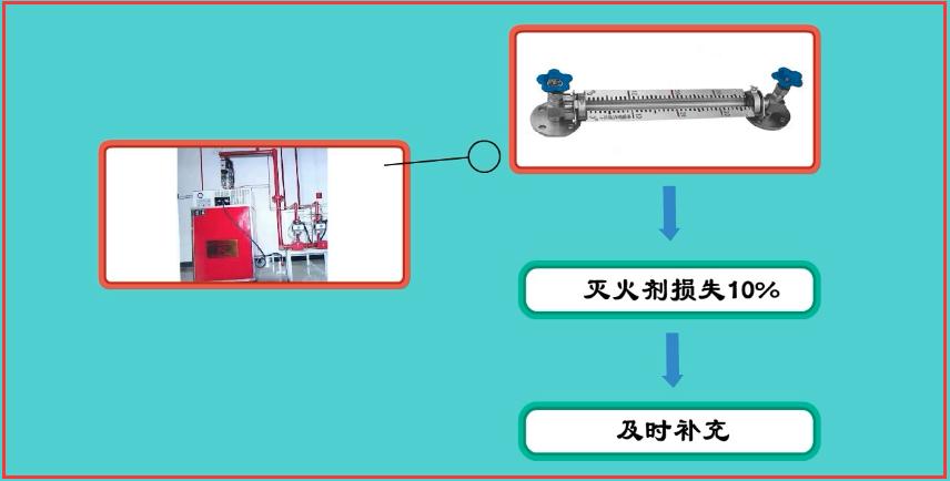(1)對低壓二氧化碳滅火系統(tǒng)儲存裝置的液位計(jì)進(jìn)行檢查,滅火劑損失10%時(shí)應(yīng)及時(shí)補(bǔ)充。