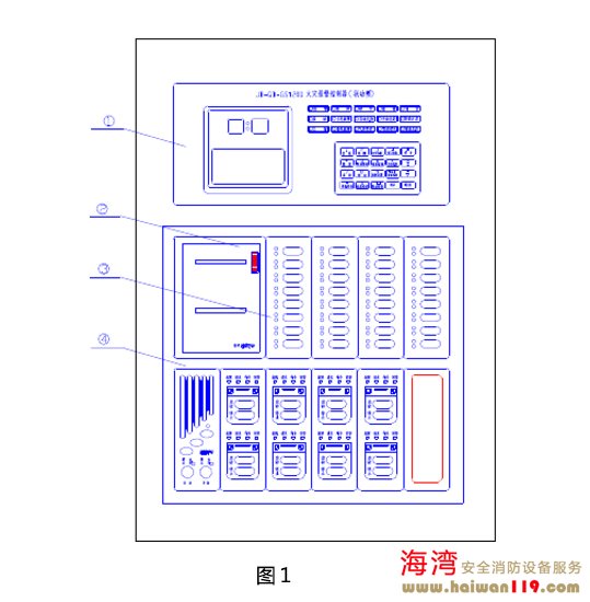 JB-QB-GST200火災(zāi)報(bào)警控制器(聯(lián)動(dòng)型)面板由顯示操作區(qū)、總線制控制區(qū)、多線制控制區(qū)及打印機(jī)面板組成,其結(jié)構(gòu)示意圖如圖1所示: