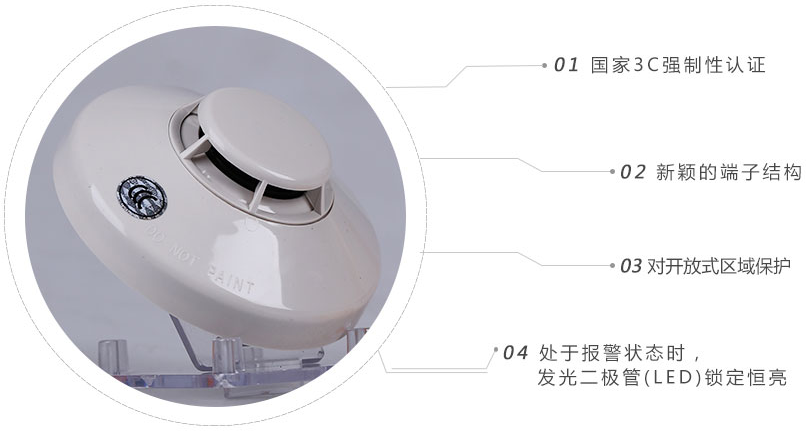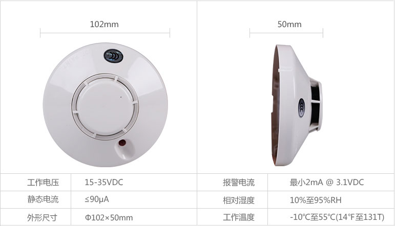 頂部的3C認(rèn)證標(biāo)志很是顯眼,一下子就能讓人知道這個(gè)產(chǎn)品的質(zhì)量經(jīng)得起考驗(yàn)。同樣顯眼還有報(bào)警LED燈,在報(bào)警的時(shí)候會保持常亮,易于發(fā)現(xiàn),提醒人們該探測器處于工作狀態(tài)。