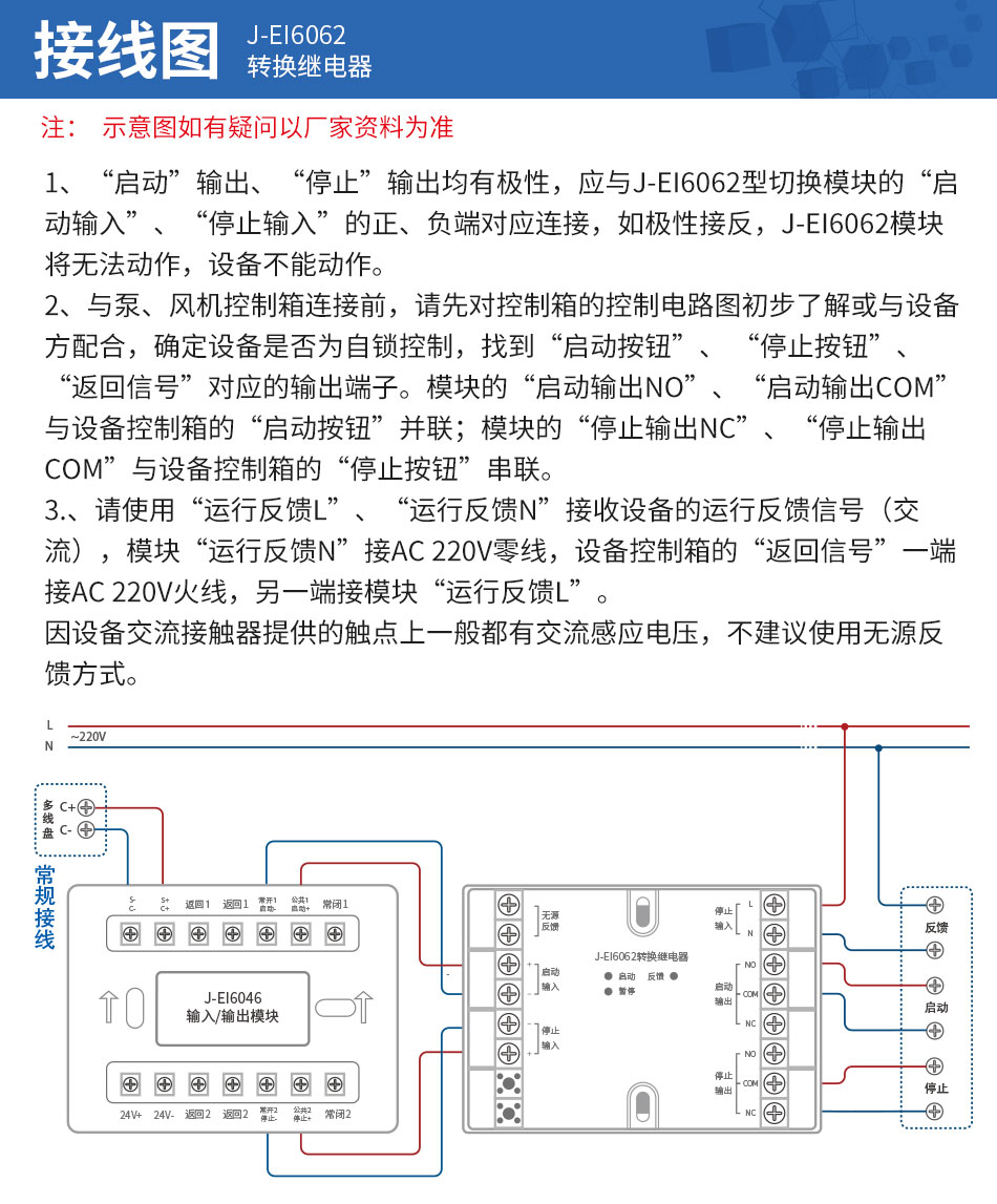 依愛(ài)J-EI6062切換模塊 轉(zhuǎn)換繼電器接線(xiàn)圖