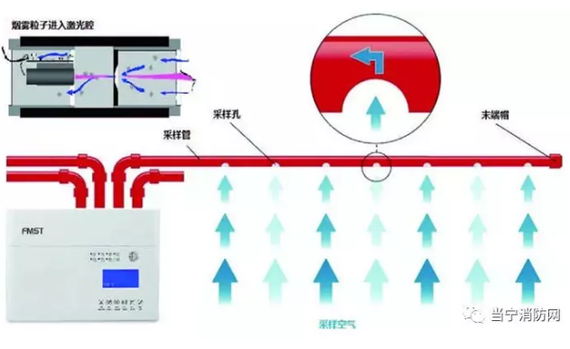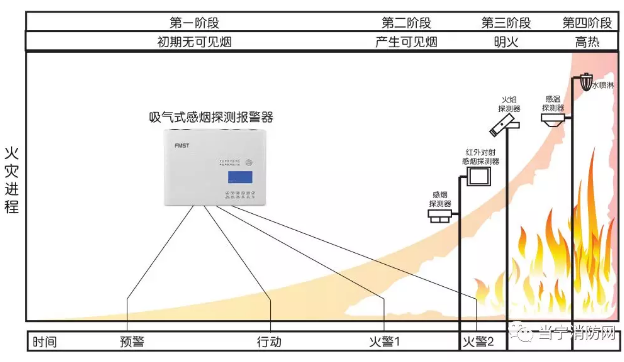 FMST的設(shè)計思想是針對火災(zāi)初期(過熱、悶燒、或低熱輻射和氣溶膠生成等不可見煙霧生成階段)的探測與報警,可以在火災(zāi)生成初期及時發(fā)現(xiàn)并排除火災(zāi)隱患,使火災(zāi)損失降到低。
